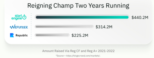 Focusing on the number of visitors seems to be paying off, as between 2021 and 2022, they managed to surpass both Wefunder and Republic in terms of total funds raised during campaigns. Exact numbers are shown below. Naturally, the high visitor count also makes it easier to raise funds for their own campaigns.